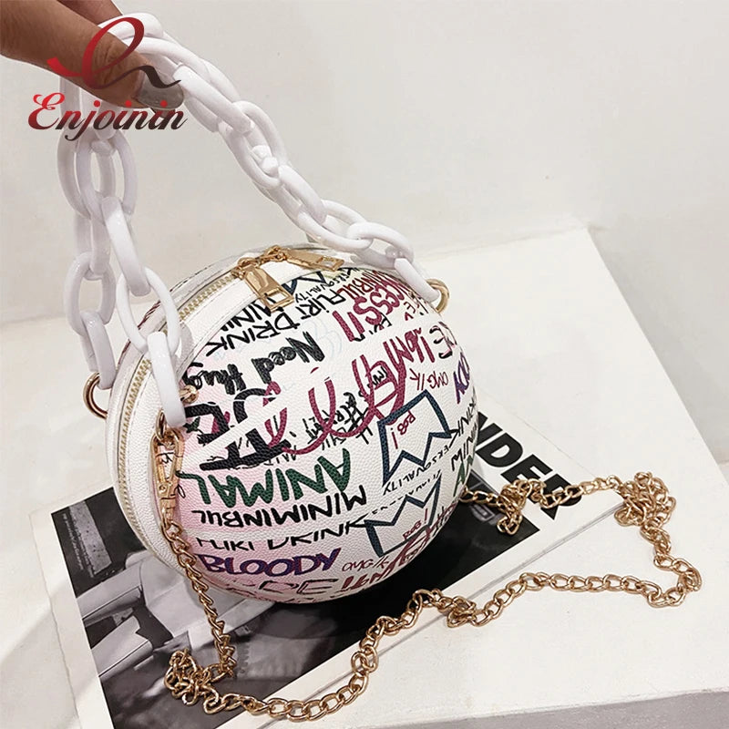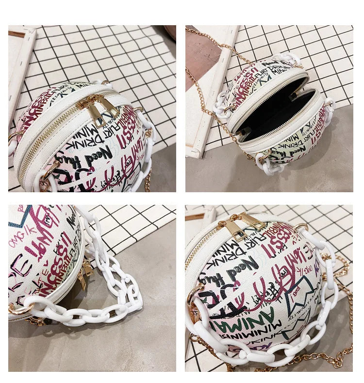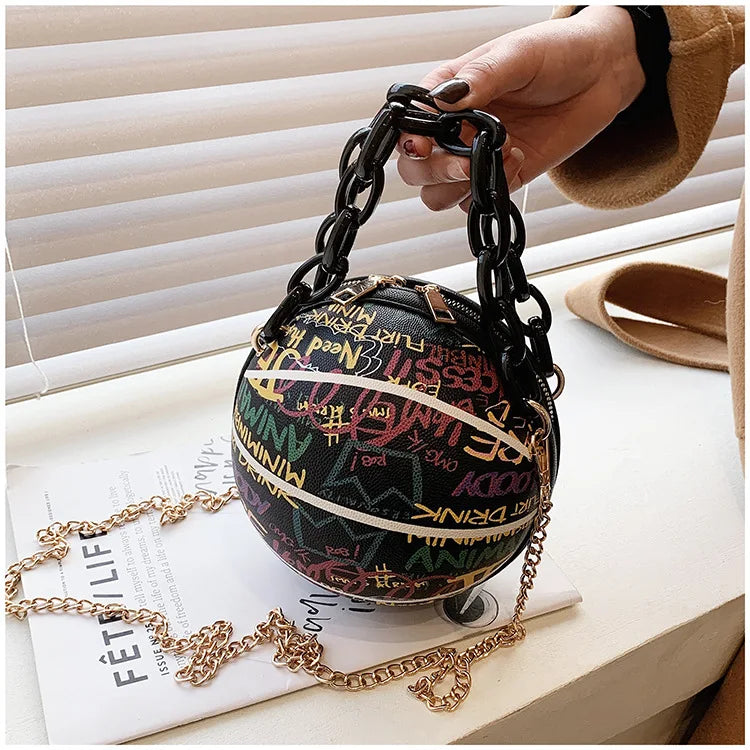 Graffiti Basketball Shape Chain Shoulder Bag for Women Crossbody Bag
