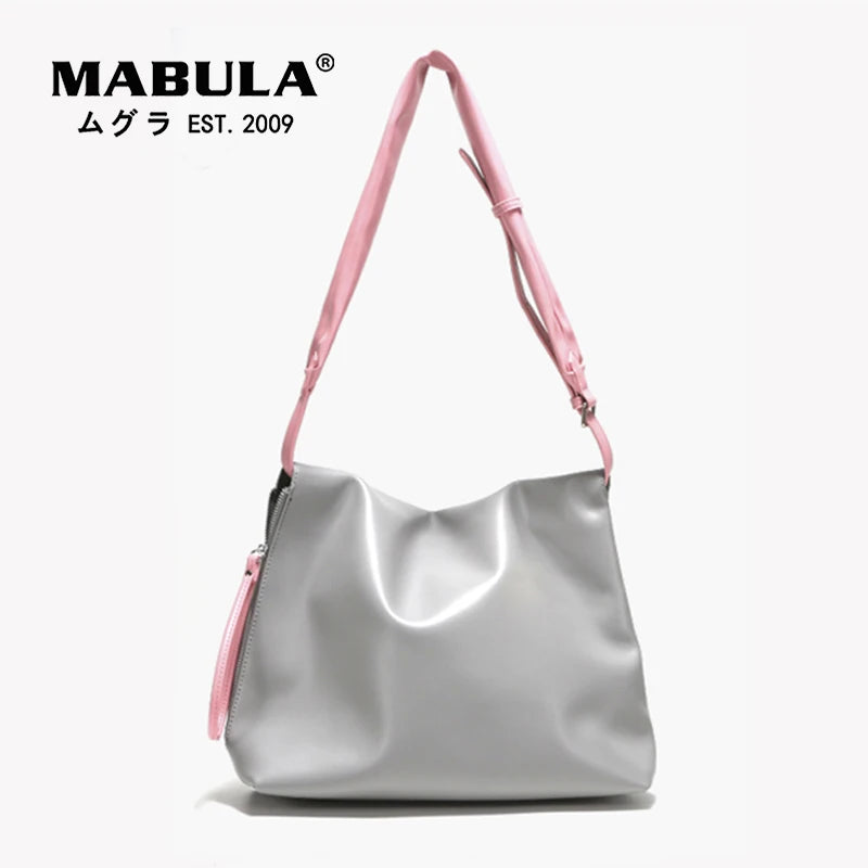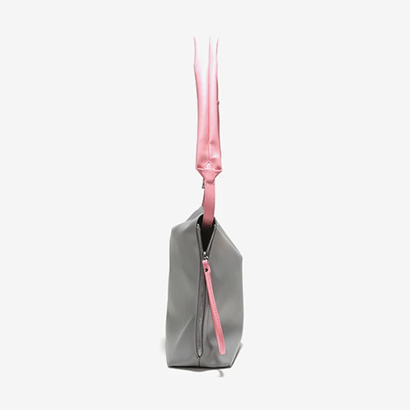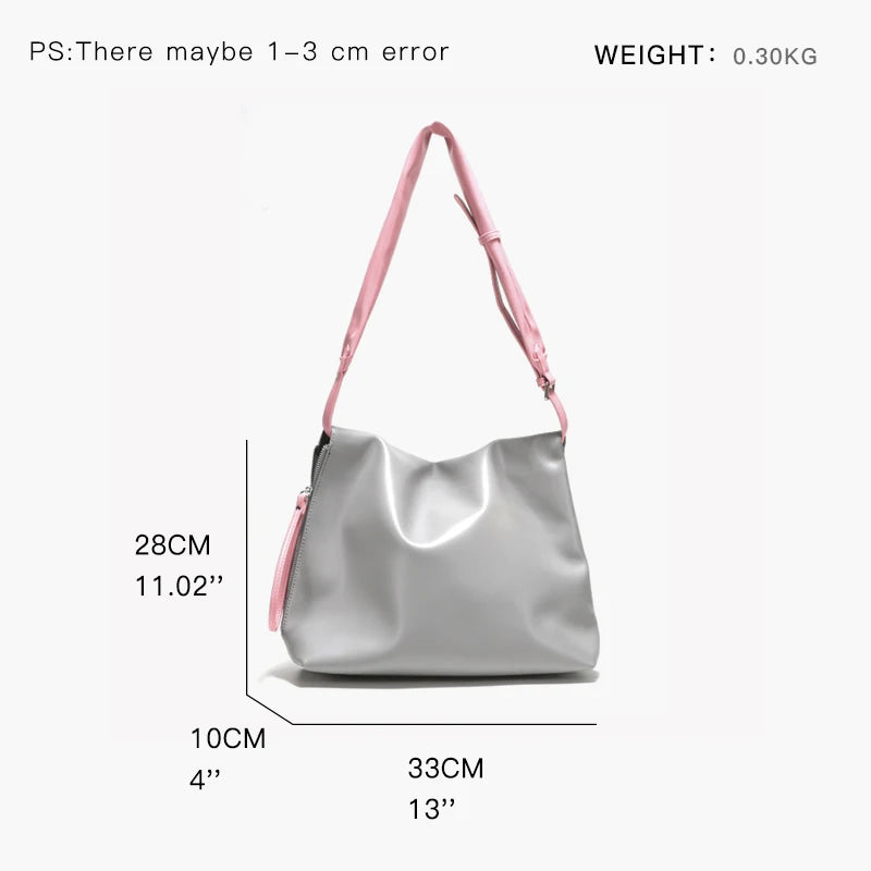 Elevate your style with this stylish gray and pink PU leather shoulder bag. Features adjustable strap, square hobo design, and can be worn as a crossbody or messenger bag.