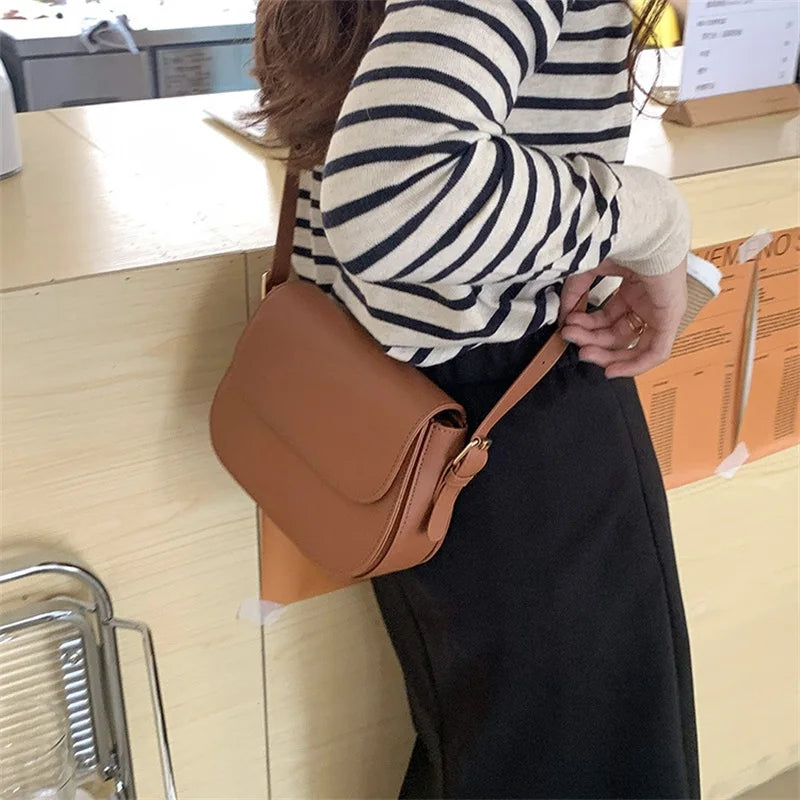 - Solid color flap adds a chic touch