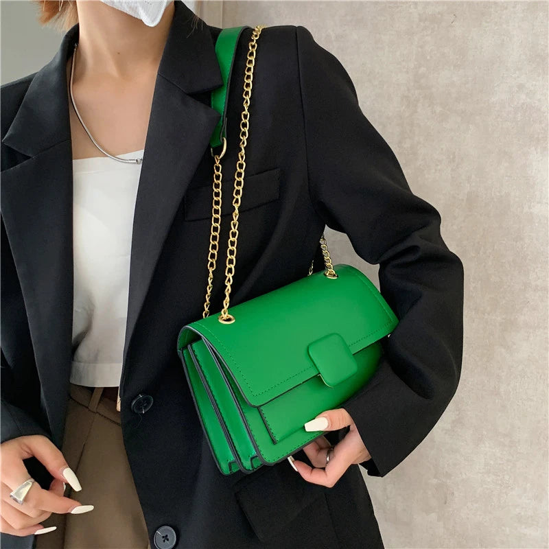 Green Shoulder Bag Flip Women Bag Solid PU Leather Underarm Bag