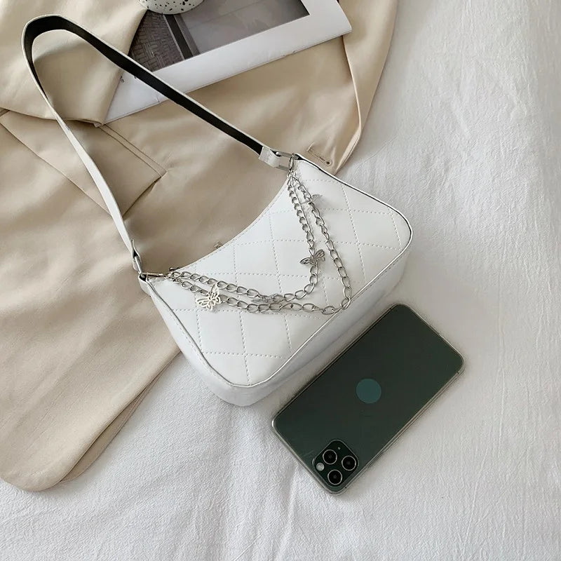 This Y2k vintage-inspired women's bag features a stylish butterfly chain design. Made of durable PU material, this casual handbag is perfect for daily use.