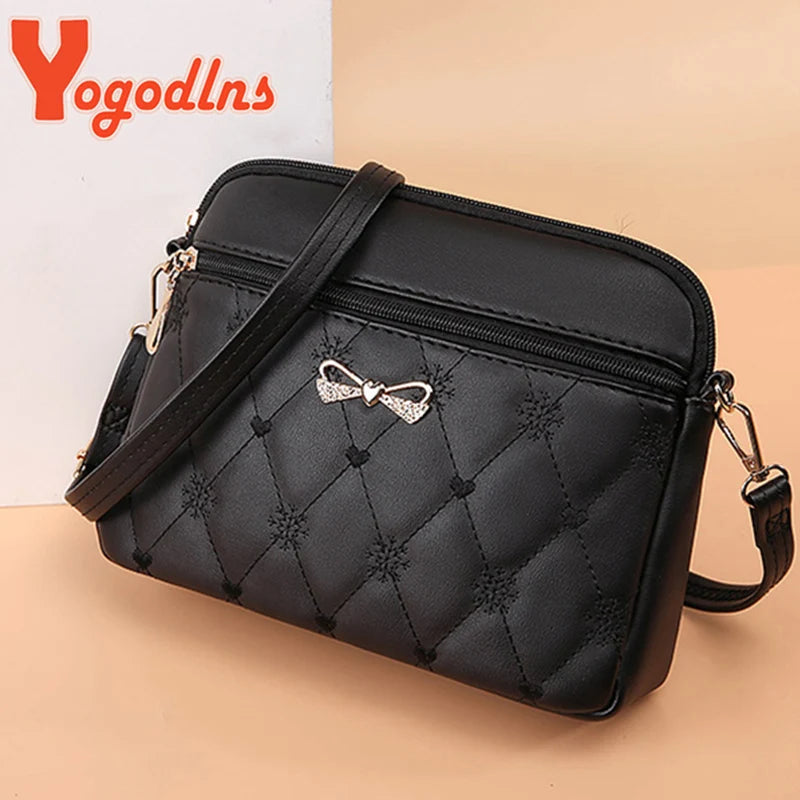 Heart Embroidery Bow Shoulder Bag PU Leather Crossbody Handbag