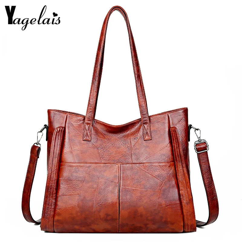 High Leather Tote Bag Large Capacity Shoulder Handbag