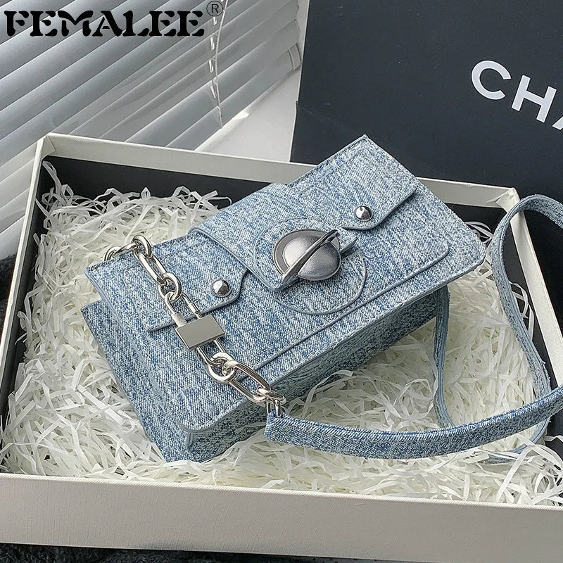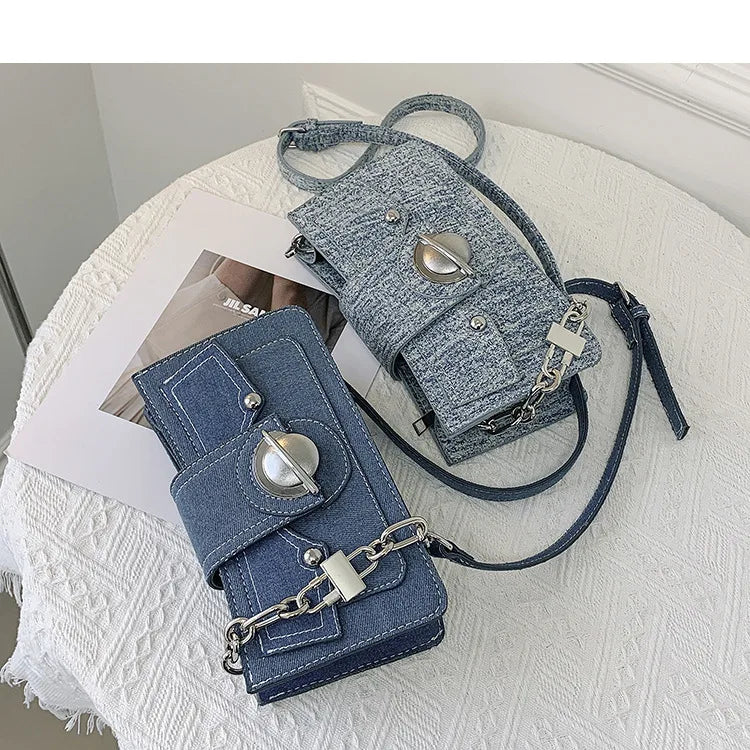 High Sense Denim Lady Small Moon Bag Clutch Purse Crossbody Shoulder Bags