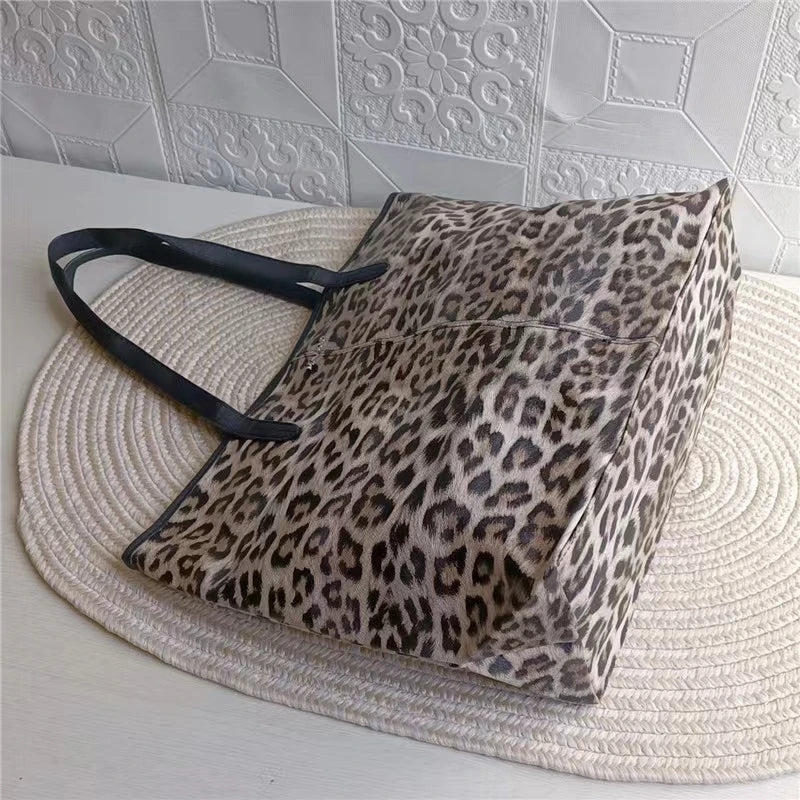 This stylish handbag is perfect for shopping, commuting, and student use. It features a large capacity and trendy leopard print design.