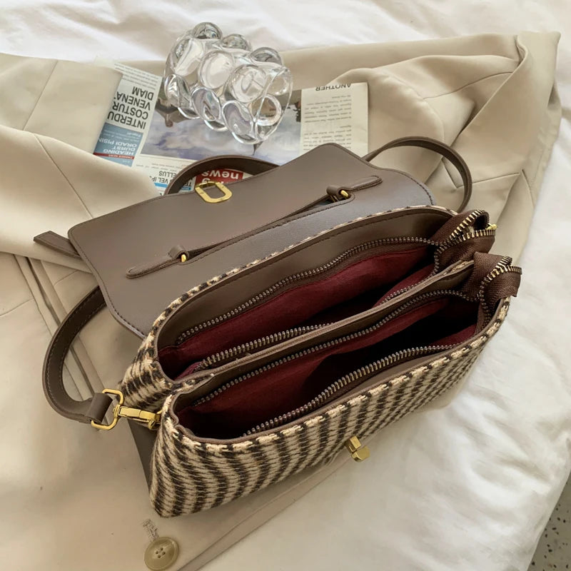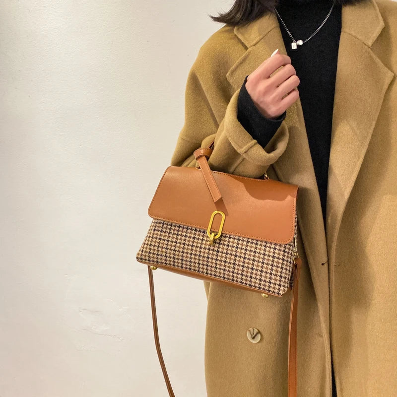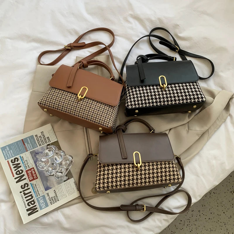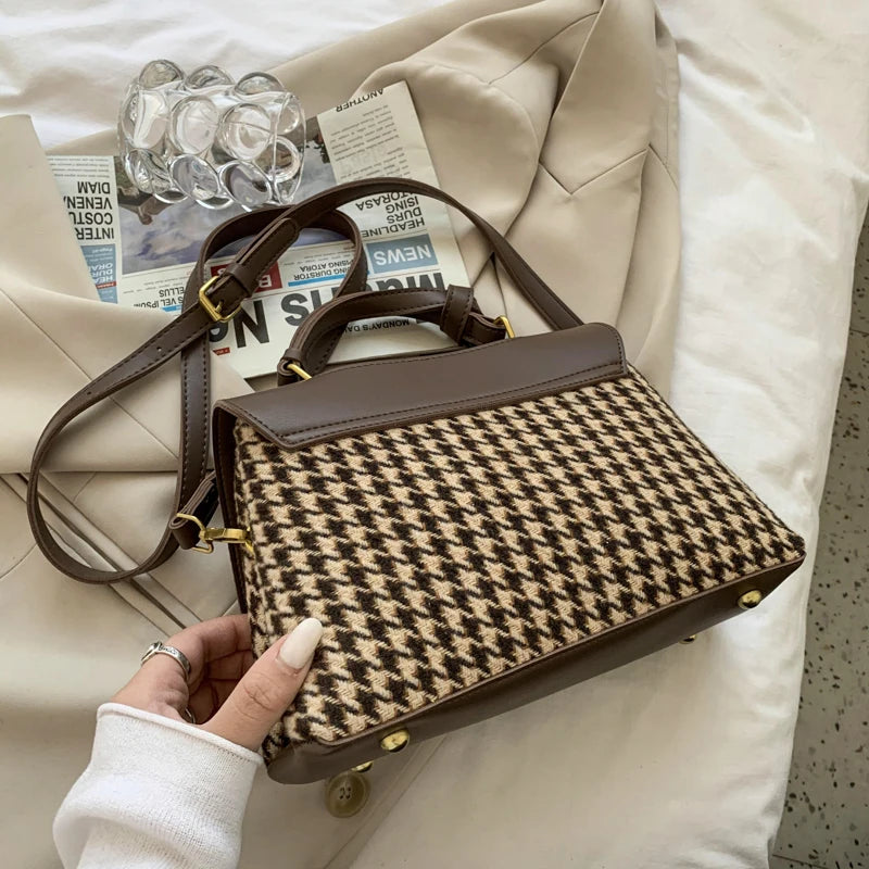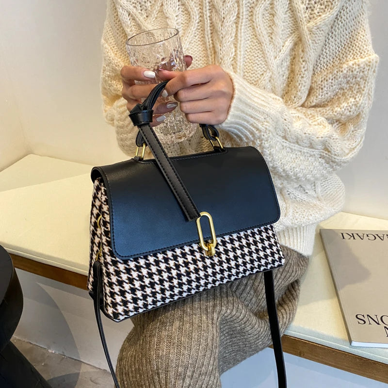 Elegant houndstooth pattern handbag for women, with a detachable scarf. Perfect for everyday use or special occasions.