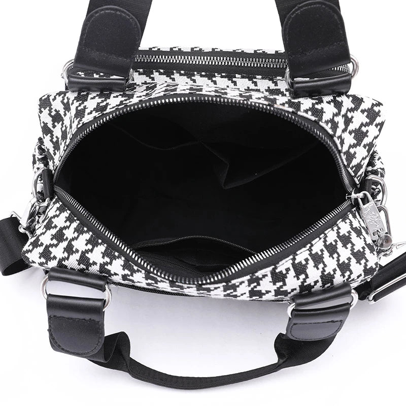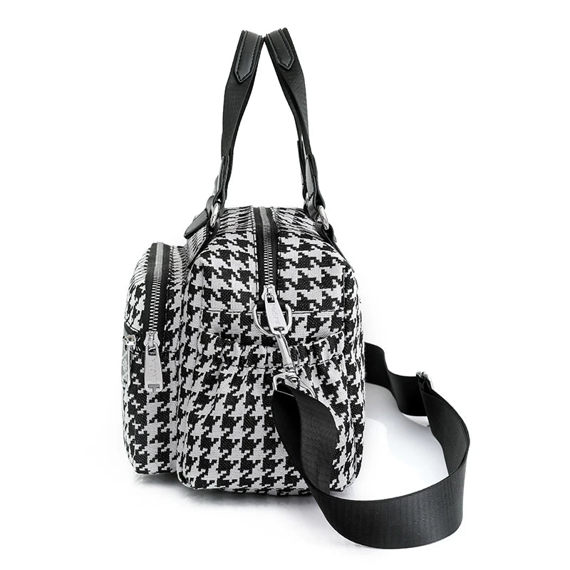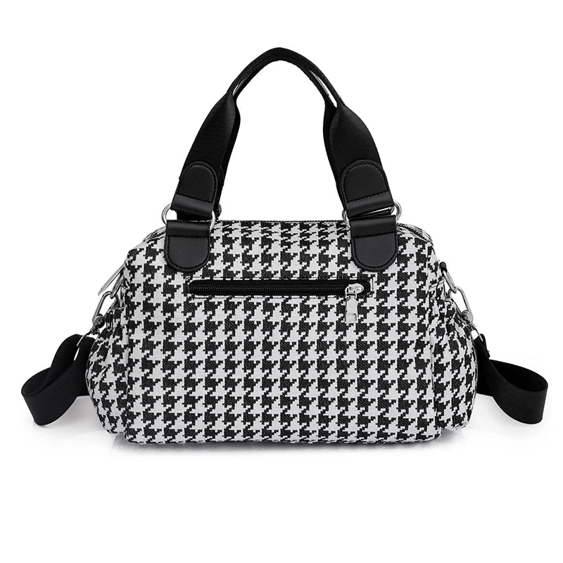 Elevate your style with this classic houndstooth canvas handbag. Perfect for any occasion, this England style bag adds a touch of sophistication to your outfit.