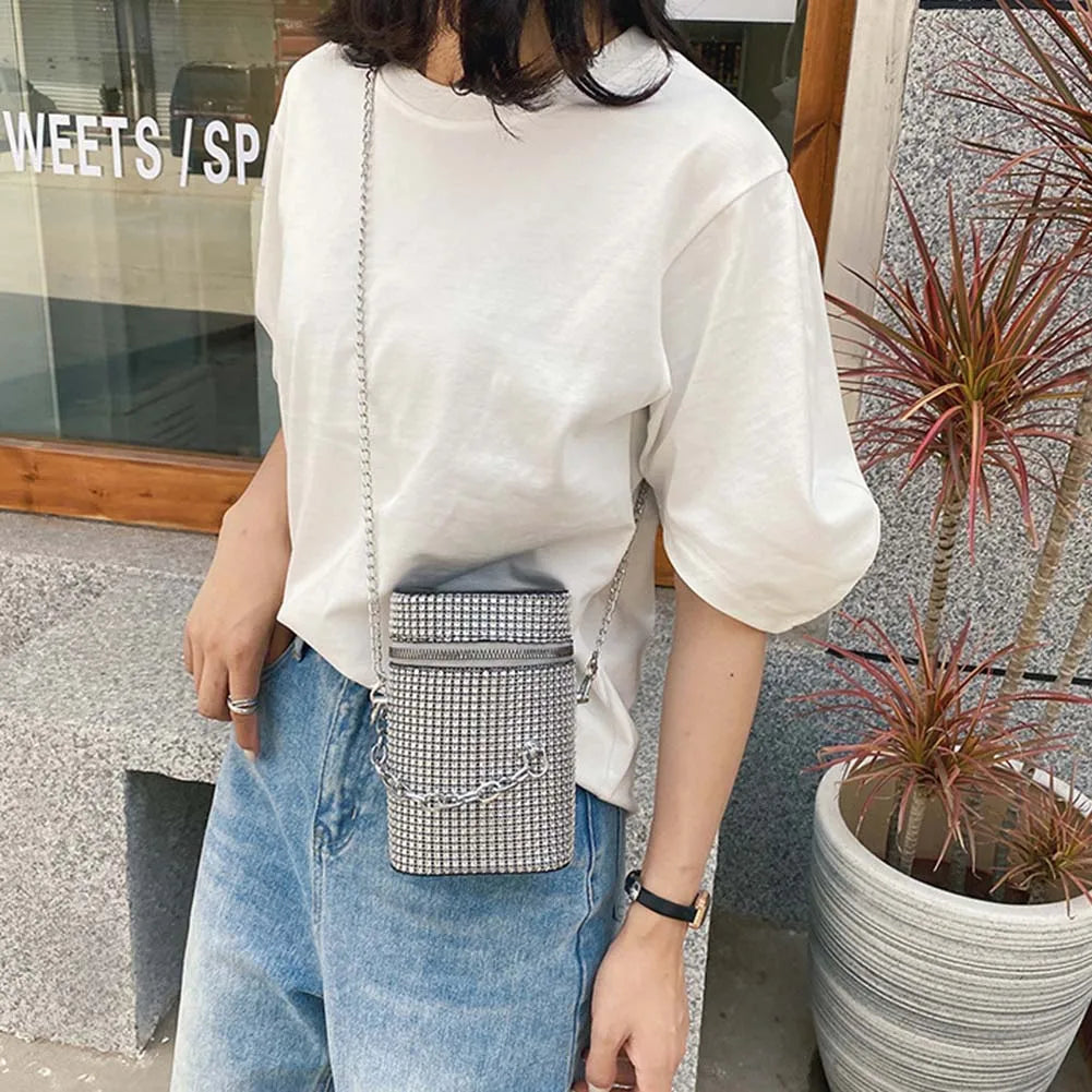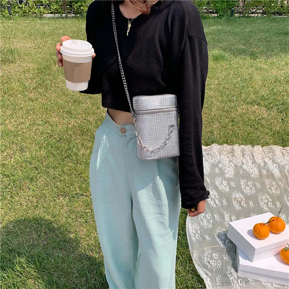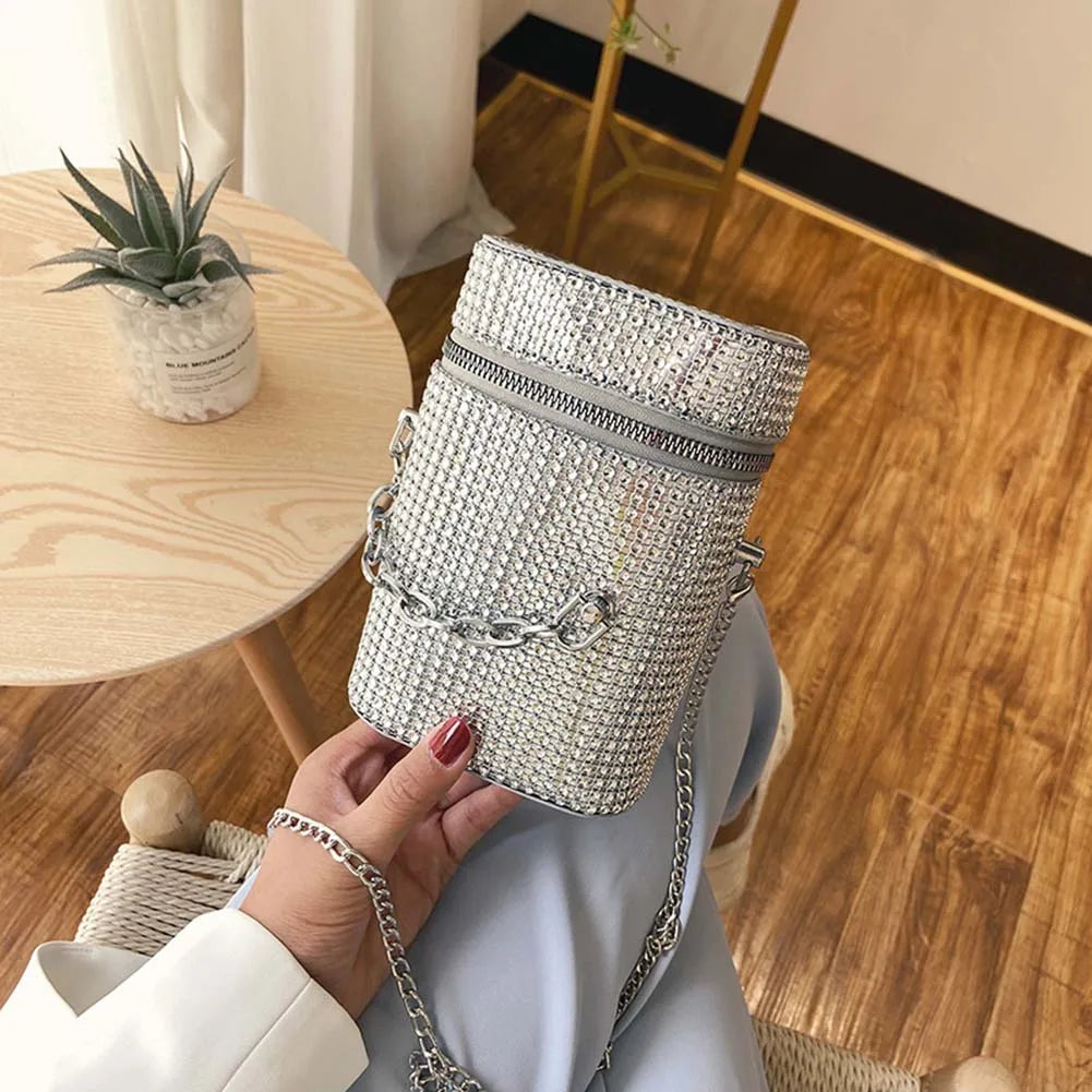 INS Women's Diamond Bucket Handbag Rhinestone Crystal Chain Shoulder Bag