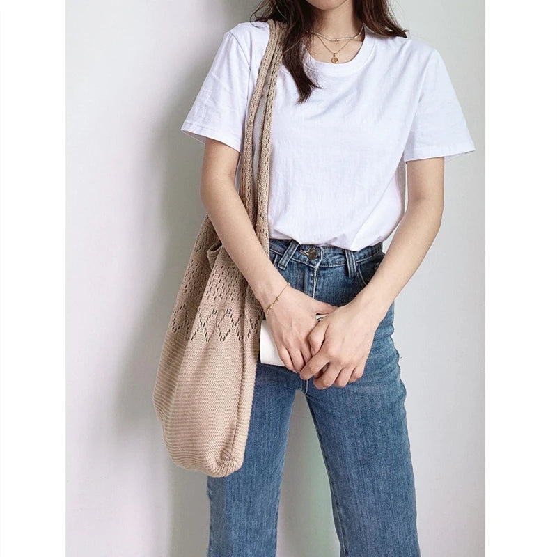 Jamhoo Women Hollow Woven Shoulder Bags Knitting Handbags Large Capacity