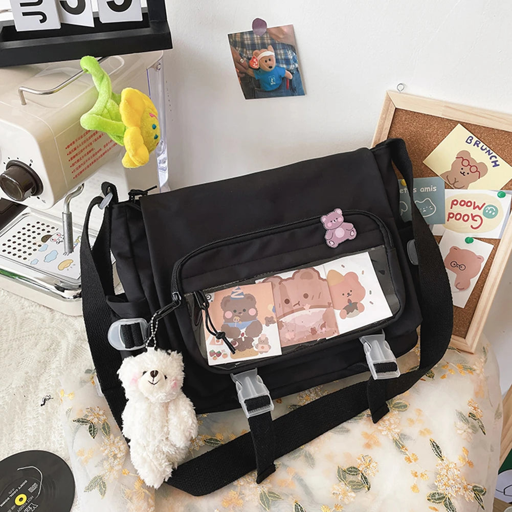 This stylish messenger bag is perfect for teenage girls and students. It features a unique Japanese Harajuku design that is sure to stand out.