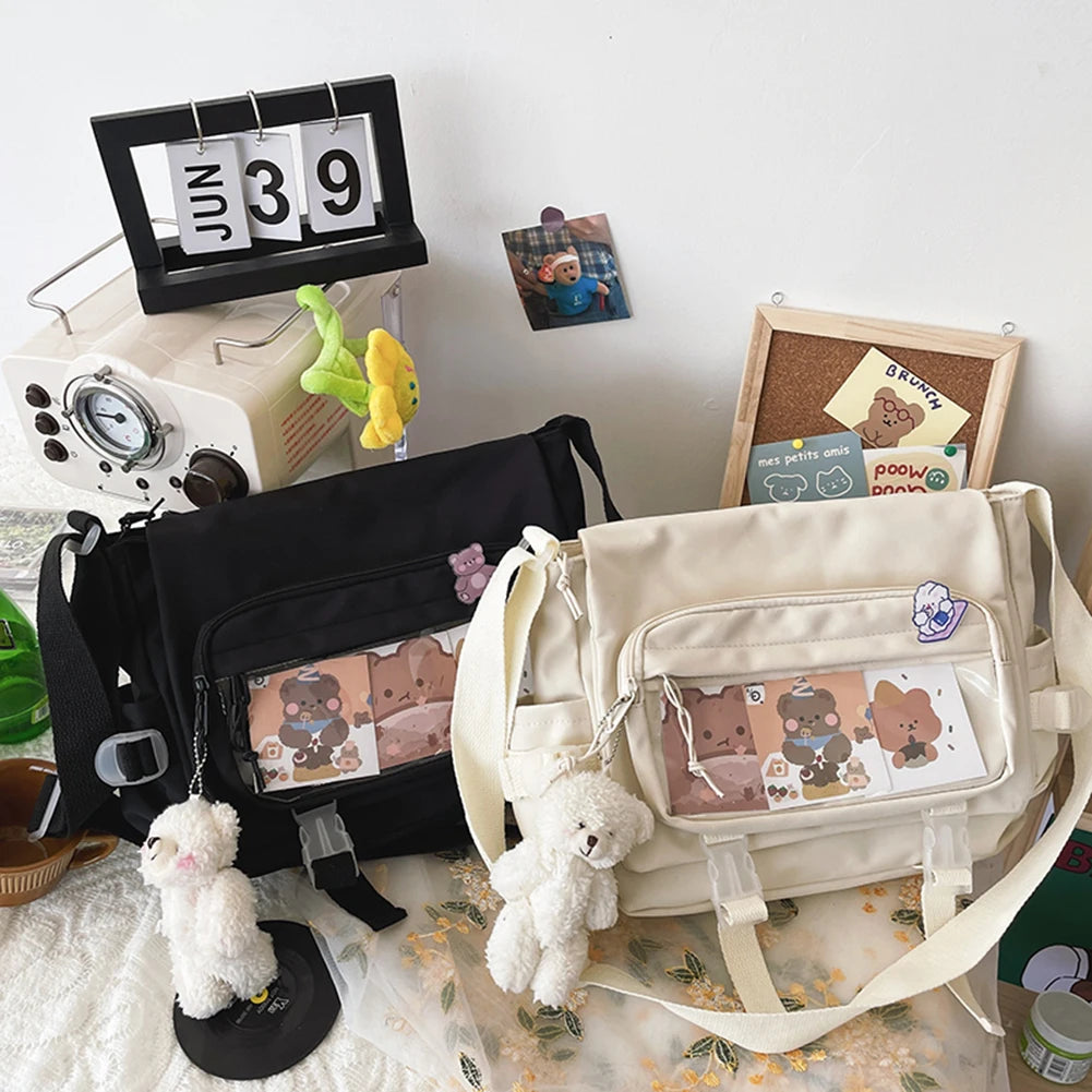 Description:This stylish messenger bag is perfect for teenage girls and students. It features a unique Japanese Harajuku design that is sure to stand out.Features: Ideal for teenage girls and students Unique Japanese Harajuku design Spacious and practical for everyday use Adjustable shoulder strap for comfort Perfect for carrying essentials on...