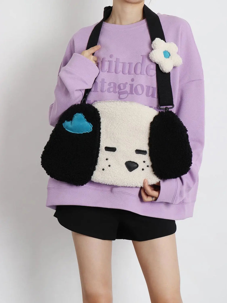 Japanese Puppy Plush Tote Bag Autumn Winter Large Capacity Shoulder Messenger Ba