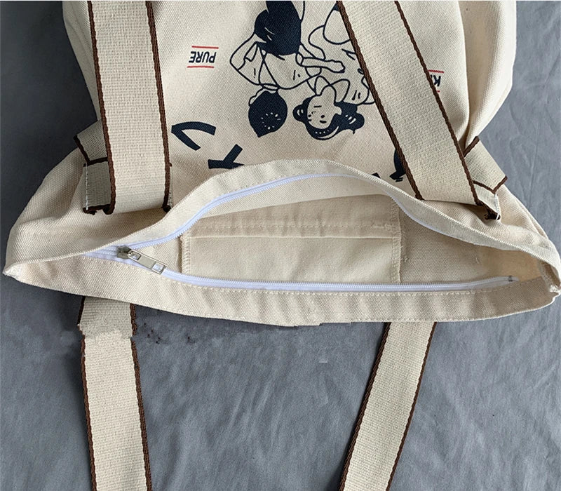 Japanese Style Retro Cartoon Anime Print Canvas Tote Bag Women Shopper Bag