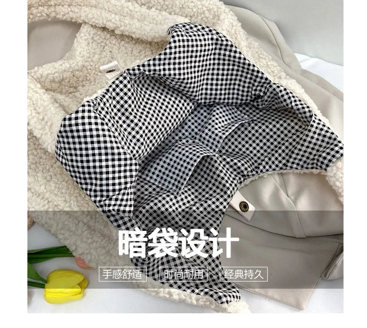 Lamb Fabric Women's Shoulder Bags Large Capacity Embroidery Handbag