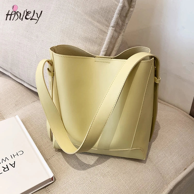 Large Capacity Bucket Bag Women PU Leather Handbag All-match Crossbody Shoulder