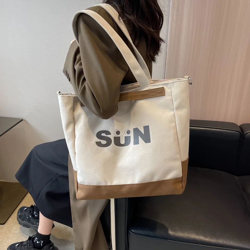This canvas shoulder bag is perfect for students with its large capacity. Made from cotton cloth, it is durable and stylish.