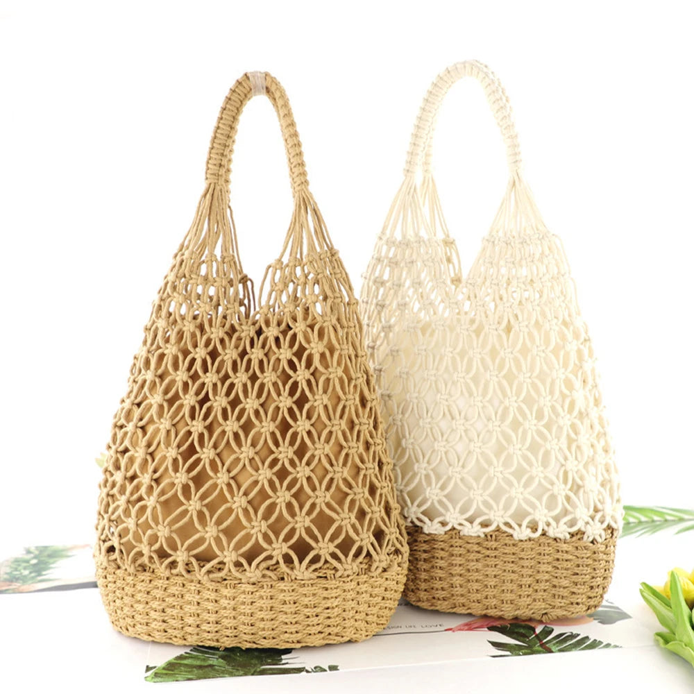 This hollow woven shoulder bag is perfect for summer travel, beach outings, and shopping. It is made of cotton and has a large capacity to carry all your essentials.