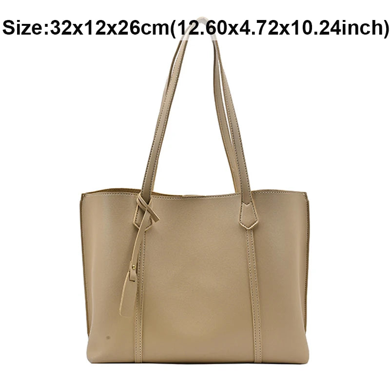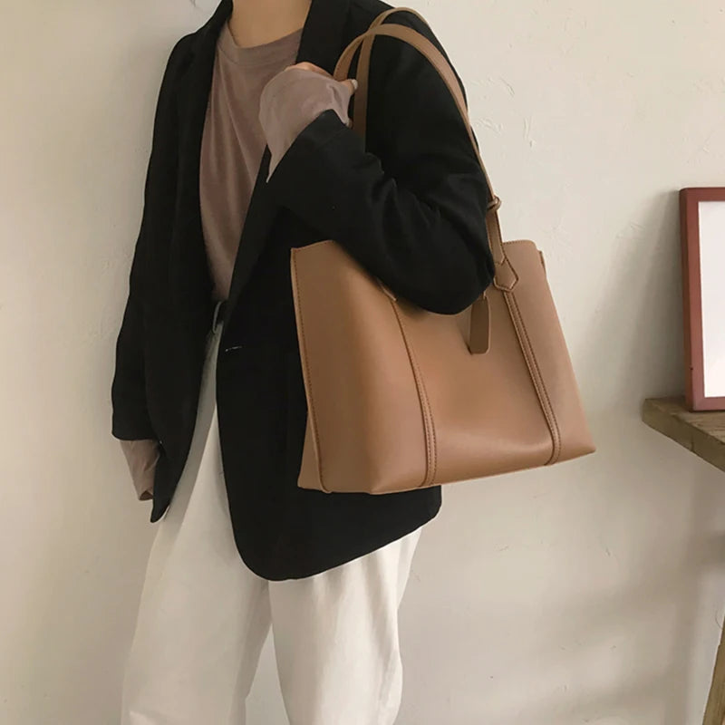 Large Capacity Tote Bags Solid PU Leather Shoulder Bag Female Zipper Bolsa