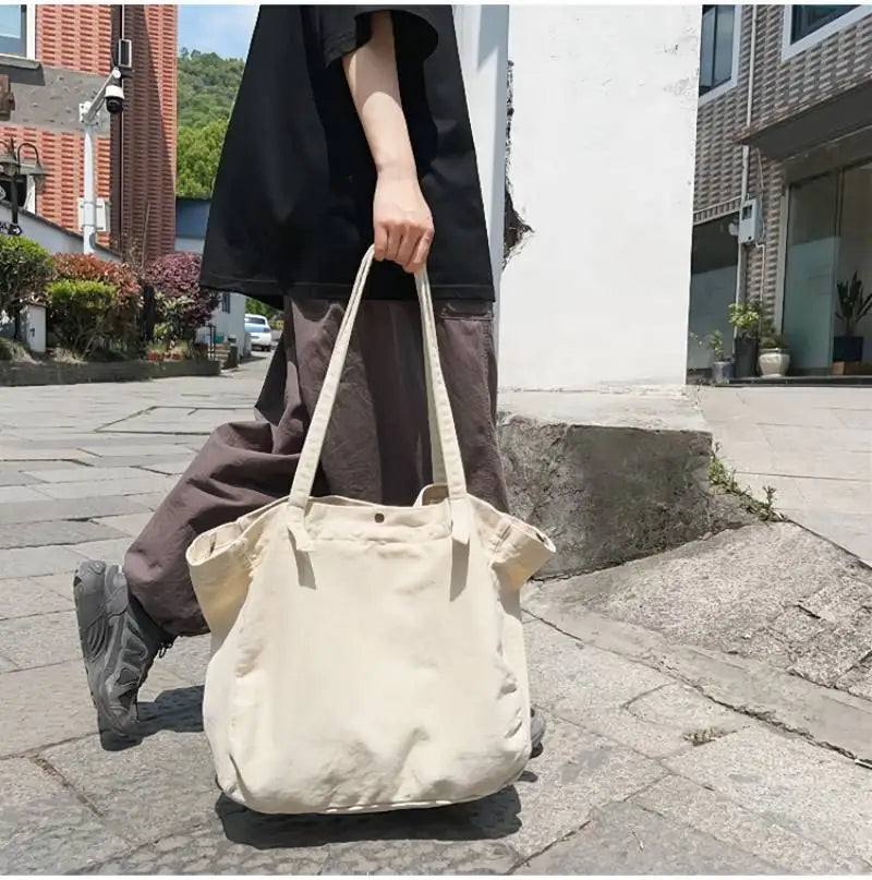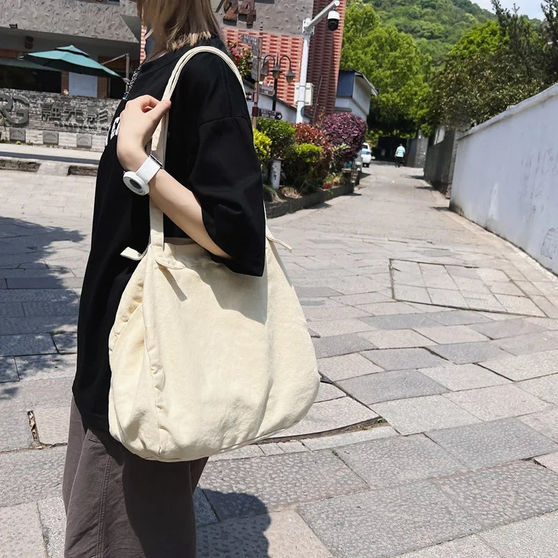 Large Capacity Women Canvas Tote Shoulder Bag Harajuku Solid Beach Shopper Bag C