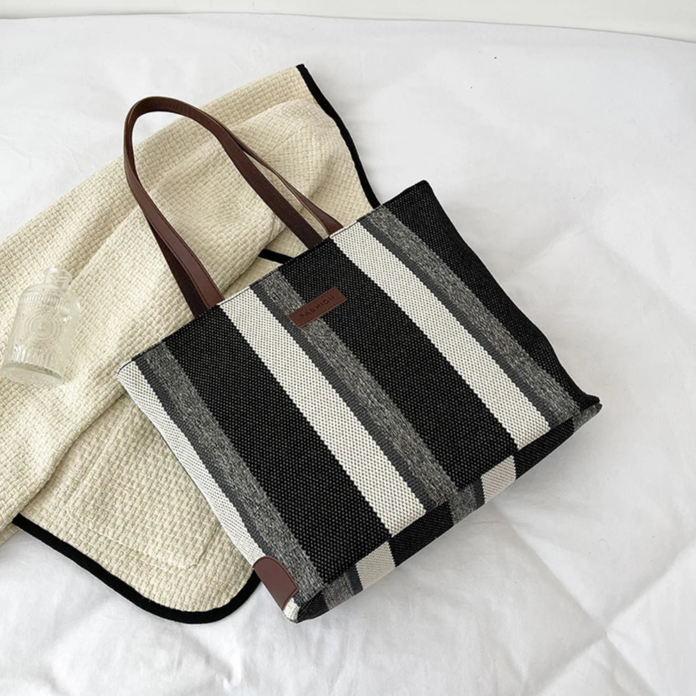 Large-capacity Women Shoulder Bags Vertical Stripes Casual Tote Handbags
