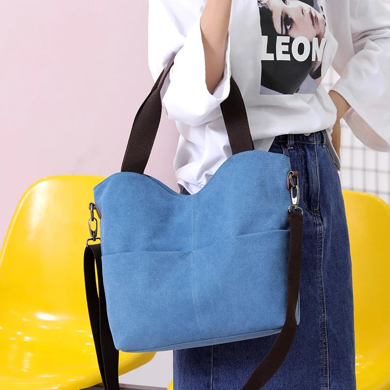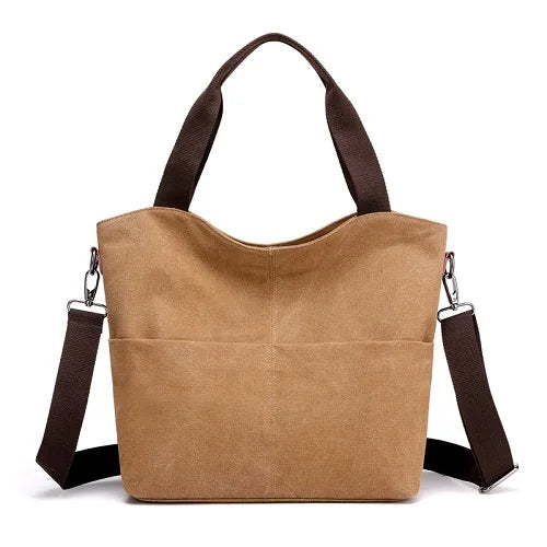 This casual tote handbag is made of high-quality canvas material, featuring a solid design with a large capacity pocket. Perfect for leisure activities.