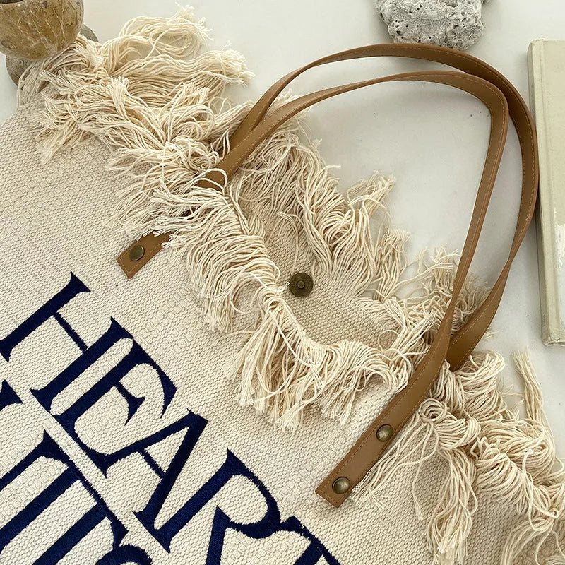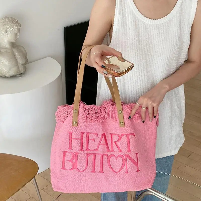 Large Tassel Canvas Shoulder Bag Pink Women Handbag