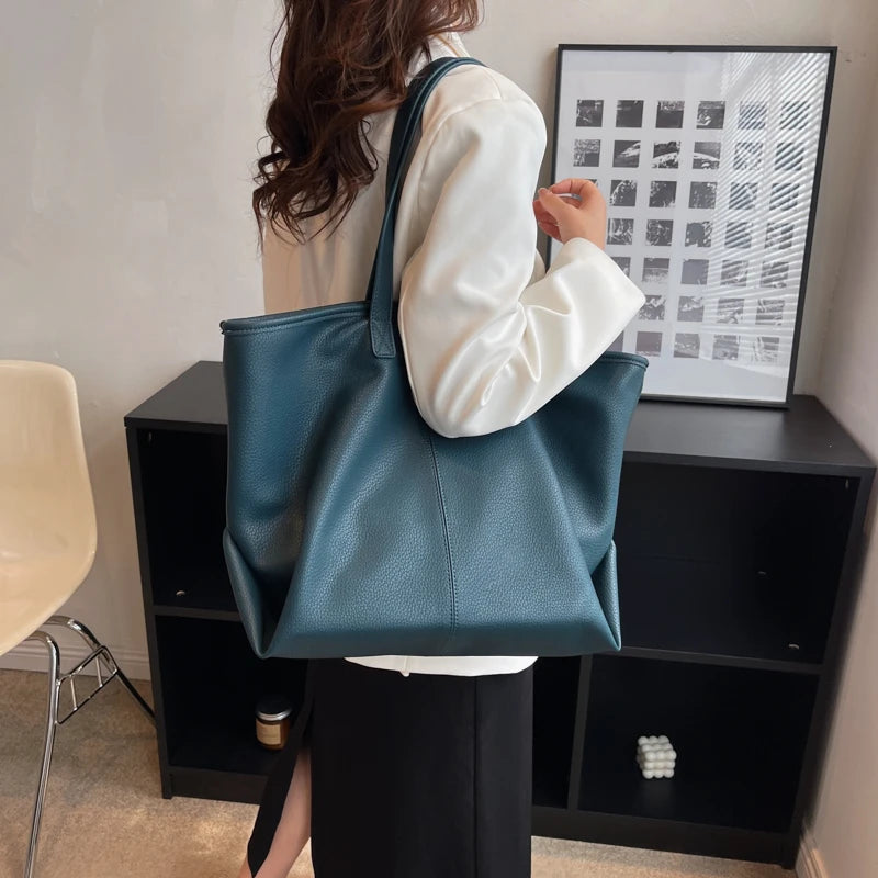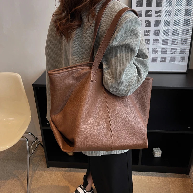 Leisure Tote PU Leather Women Shoulder Bags Large Capacity Shopping Handbags