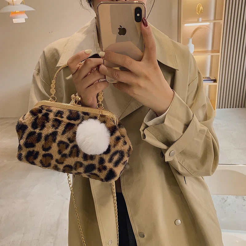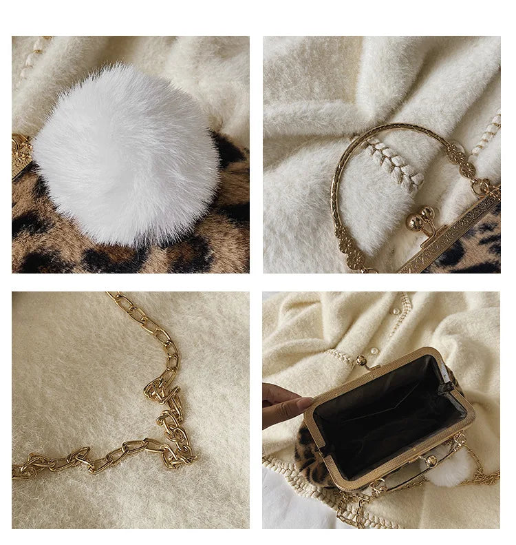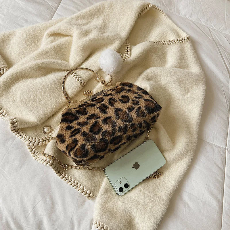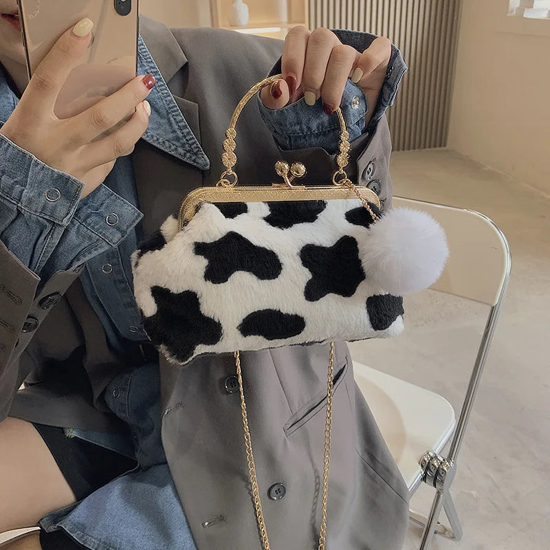 Stay stylish with this faux fur leopard cow pattern purse that is perfect for casual outings. This small shoulder bag is a trendy accessory for girls.