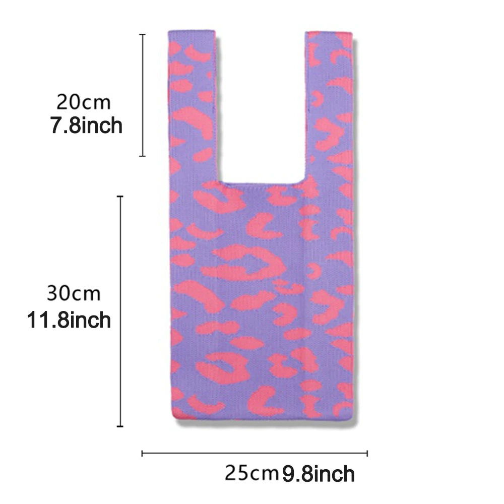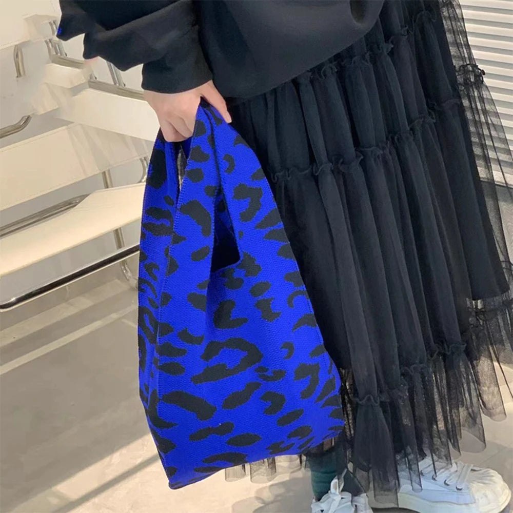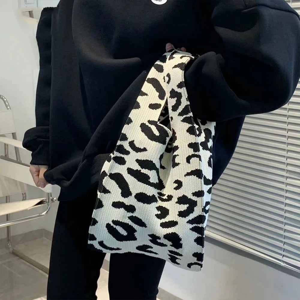 Leopard Crochet Women Handbags Knitting Wrist Bags Shoulder Bag Tote Purse