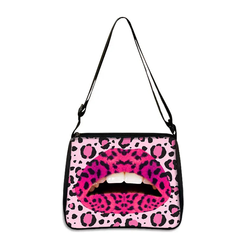 Leopard Lips Print Women Handbags Canvas Shoulder Bags Travel Hip Hop Clutch