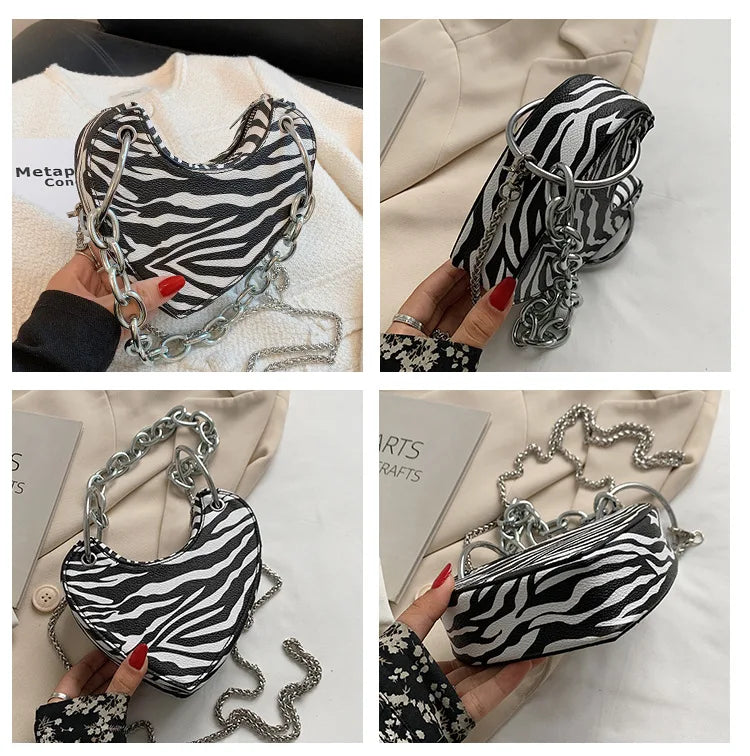 Leopard Print Chain Crossbody Bag for Women Shoulder Clutch Bag