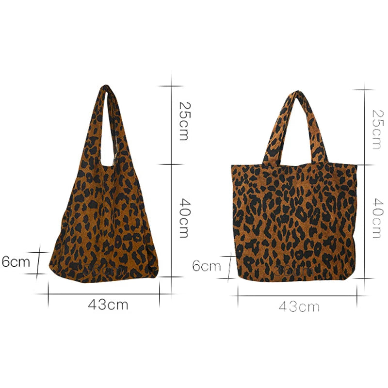Stay on trend with this stylish corduroy leopard print tote bag, perfect for everyday use. It features a large capacity for all your essentials, making it ideal for shopping or casual outings. The shoulder straps provide added comfort for carrying.