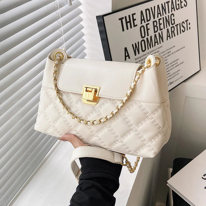 Lingge Chain Shoulder Bag PU Leather Crossbody Handbag