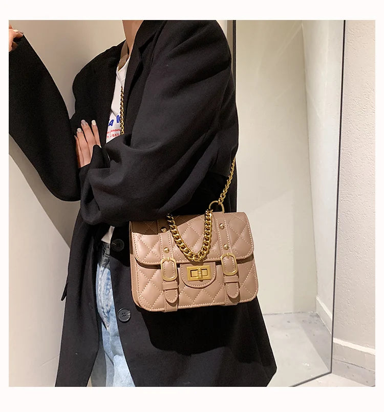 This chic Tote bag features a chain shoulder strap and messenger style. Made of high-quality PU leather, it adds a touch of elegance to your outfit.