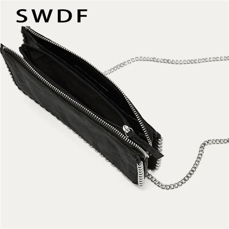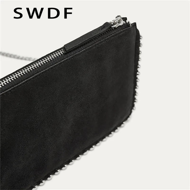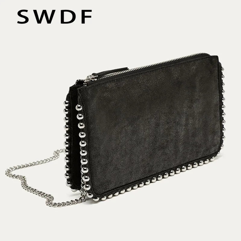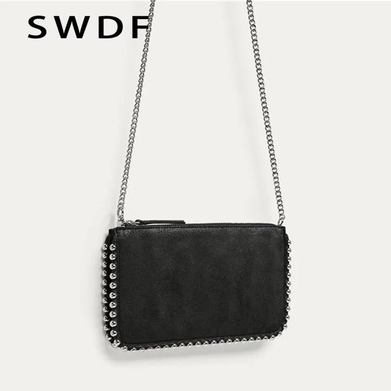 Matte Leather Crossbody Shoulder Bag with Chains Beading for Women