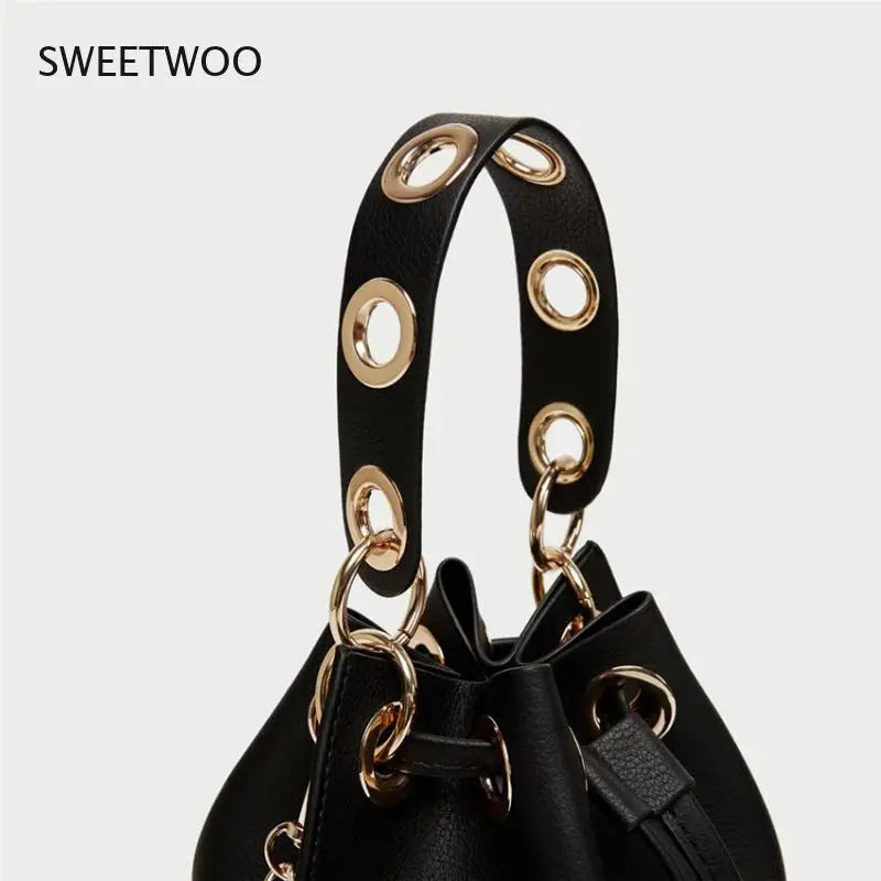 This stylish mini bucket handbag is made of high quality PU leather. It can be used as a crossbody bag or a one shoulder messenger chain bag.