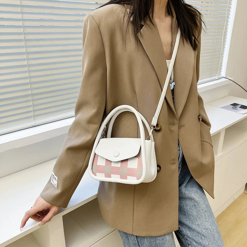 Mini PU Leather Cross-body Shoulder Bag Plaid Panelled All-match Saddle Bag