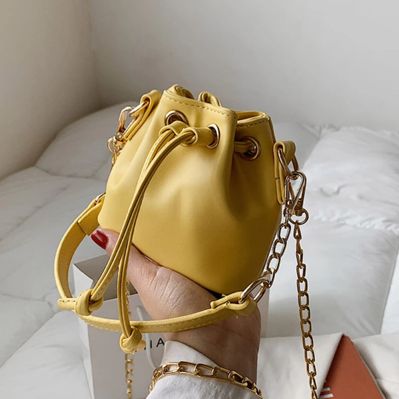 This mini bucket crossbody bag is made of high-quality PU leather with a short handle. It's perfect for carrying your essentials while adding a stylish touch to your outfit.