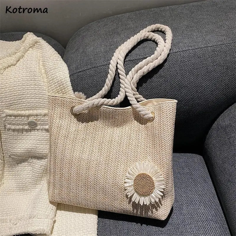Mori-girl Shoulder Bags Women Underarm Large Capacity Totes Flower Handbags