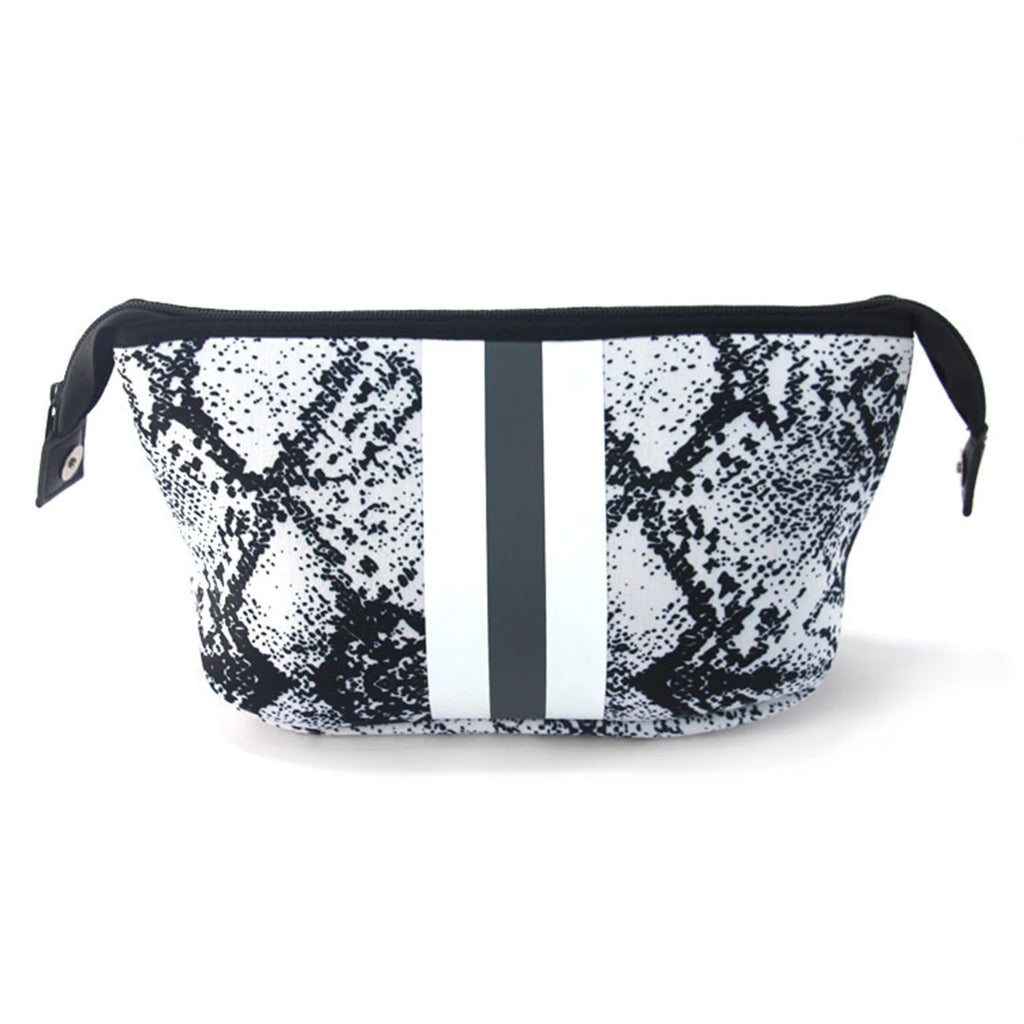 This neoprene crossbody bag is perfect for beach, swim, and travel. It's a small shoulder patchwork handbag that can also be used as a cosmetic bag. Made of waterproof material for added convenience.