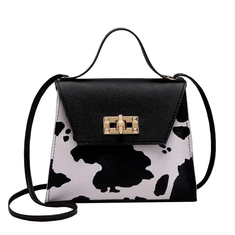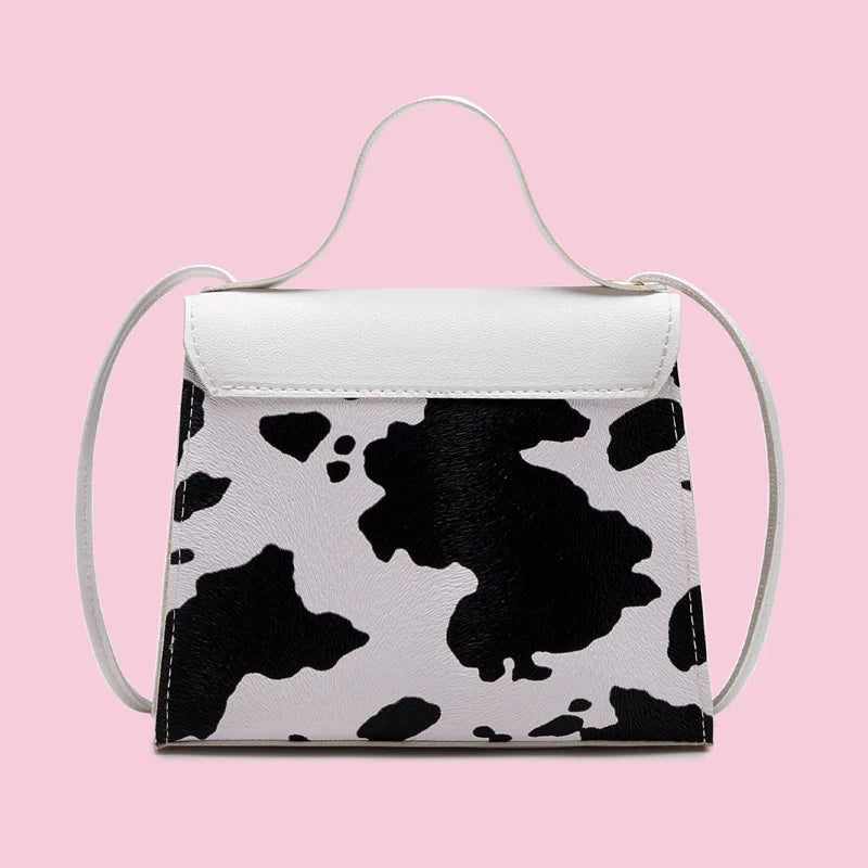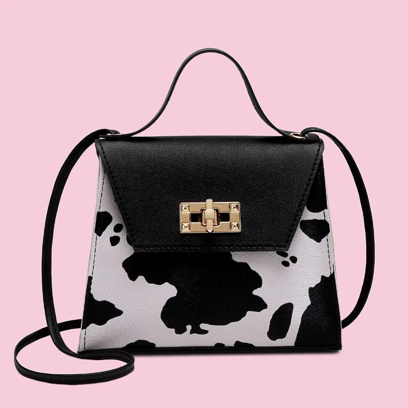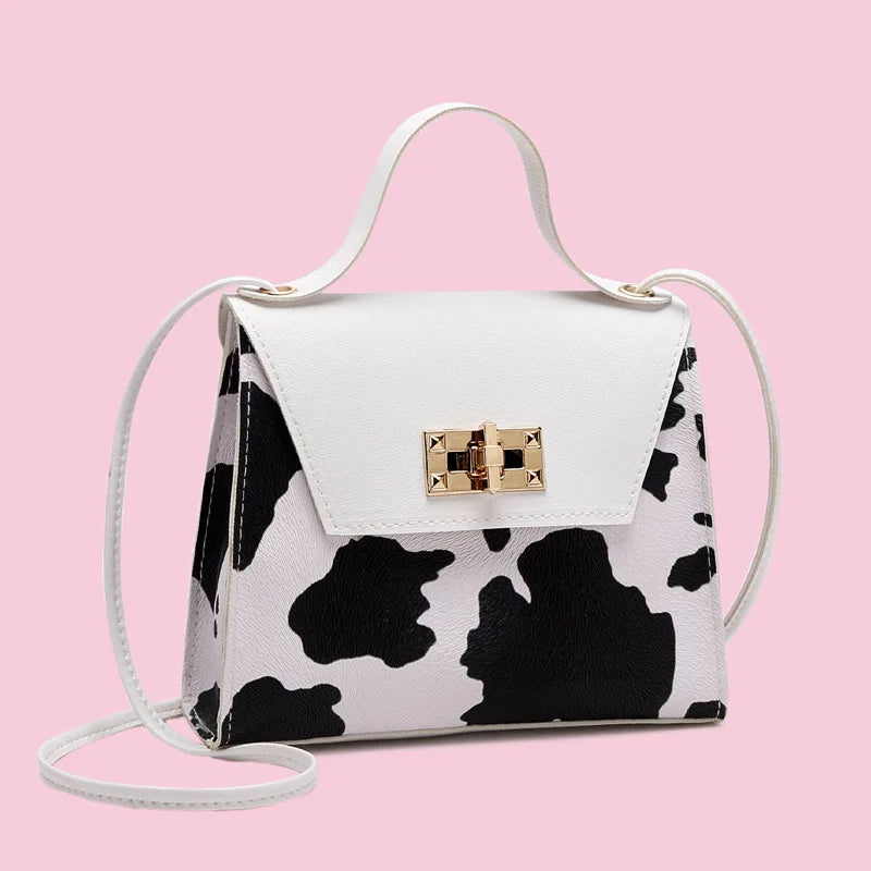 This trendy handbag features a unique cow pattern design, perfect for summer outings and events. It can be worn as a one-shoulder messenger or carried by hand.