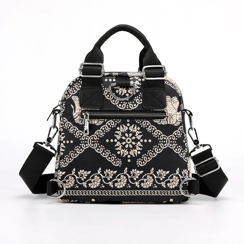 This versatile bag can be used as a shoulder bag, crossbody messenger purse, travel backpack, or shopping handbag. It's made of durable nylon material, perfect for everyday use.