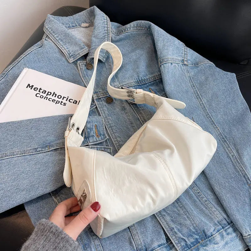 Nylon Shoulder Bag Vintage Style Large Zipper Handbag