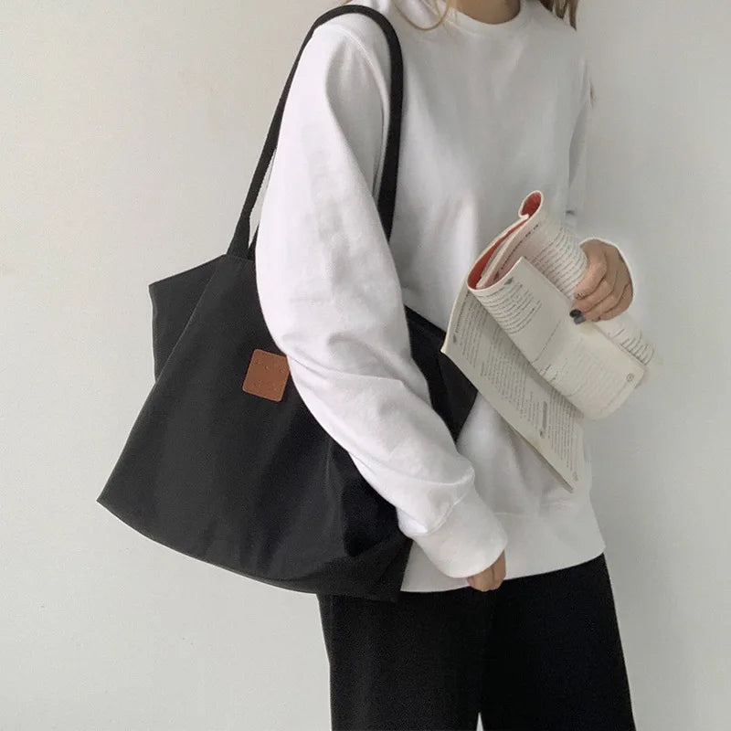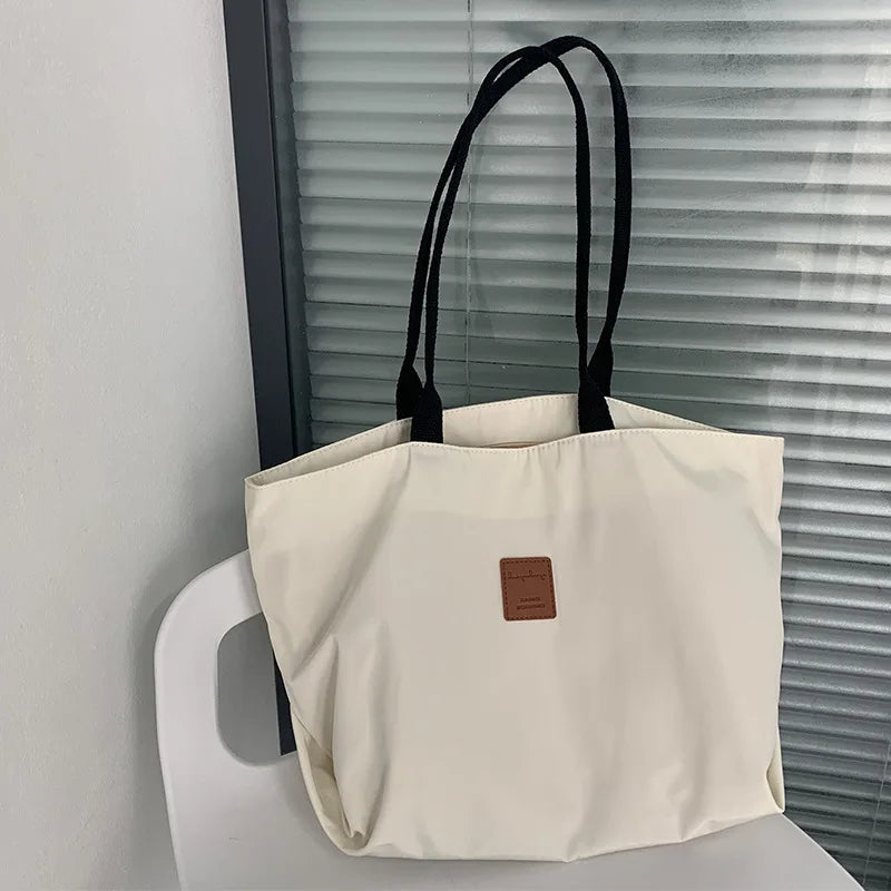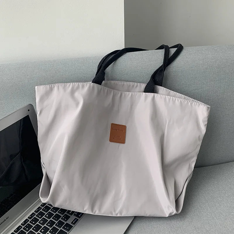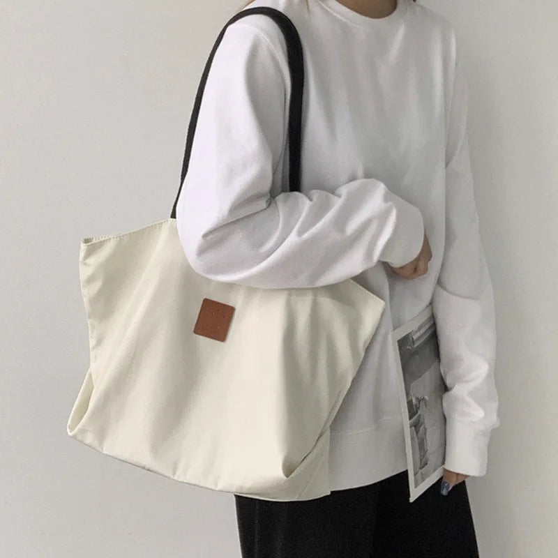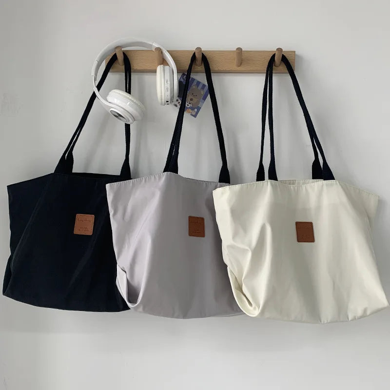Stay stylish and practical with this large capacity tote bag crafted from nylon waterproof canvas. Perfect for college students and casual outings.