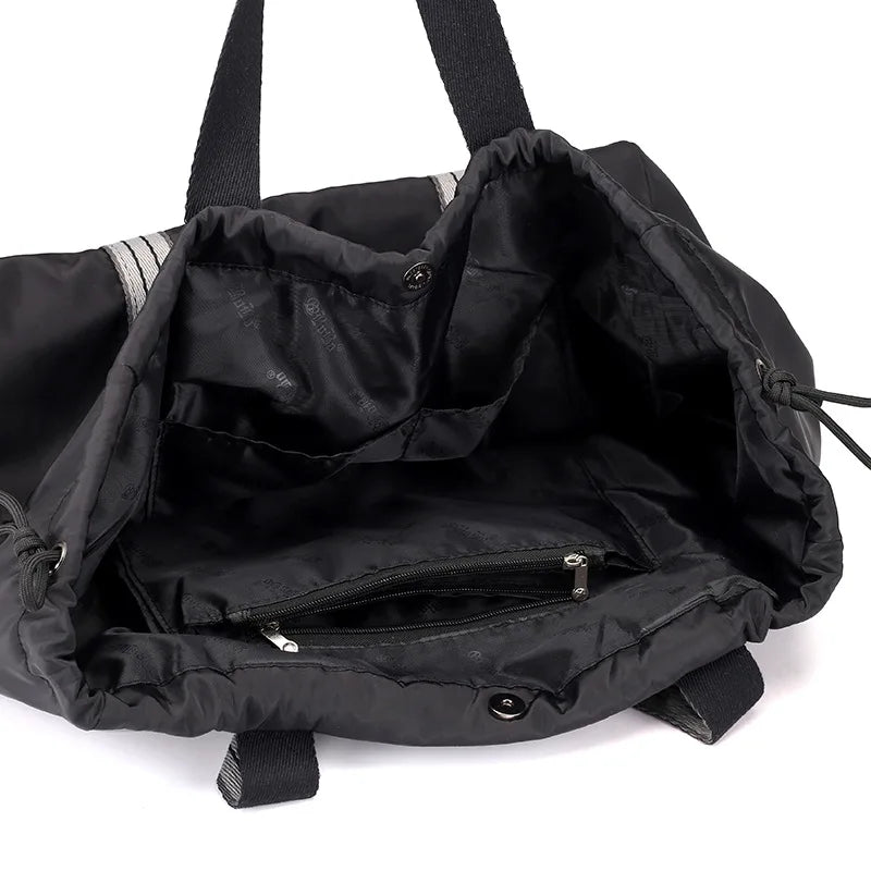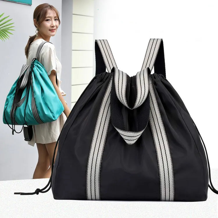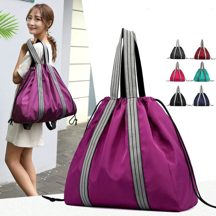 Stay organized and stylish with this versatile yoga mat bag that doubles as a gym and fitness backpack. Made of durable nylon material, it features a convenient drawstring closure for easy access.