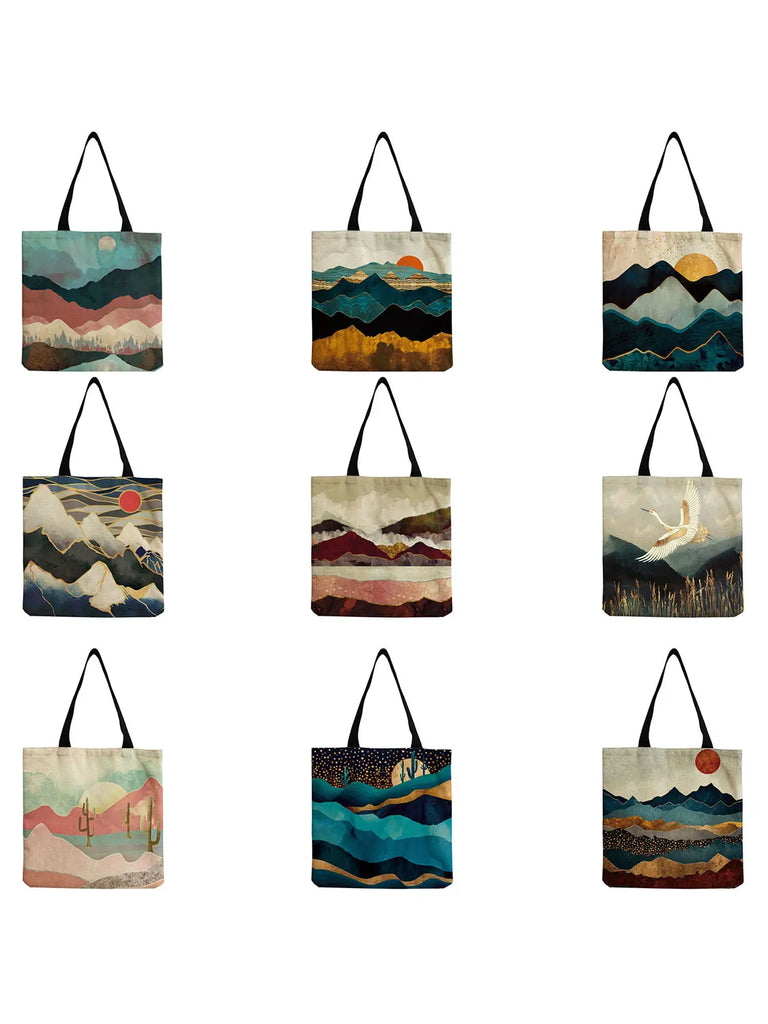 Oil Painting Mountain Forest Casual Tote Bag Handbag