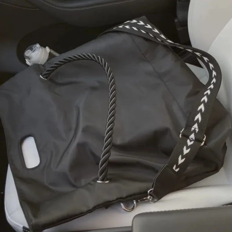 This nylon bag is perfect for women on the go. It's soft and portable, making it ideal for travel.