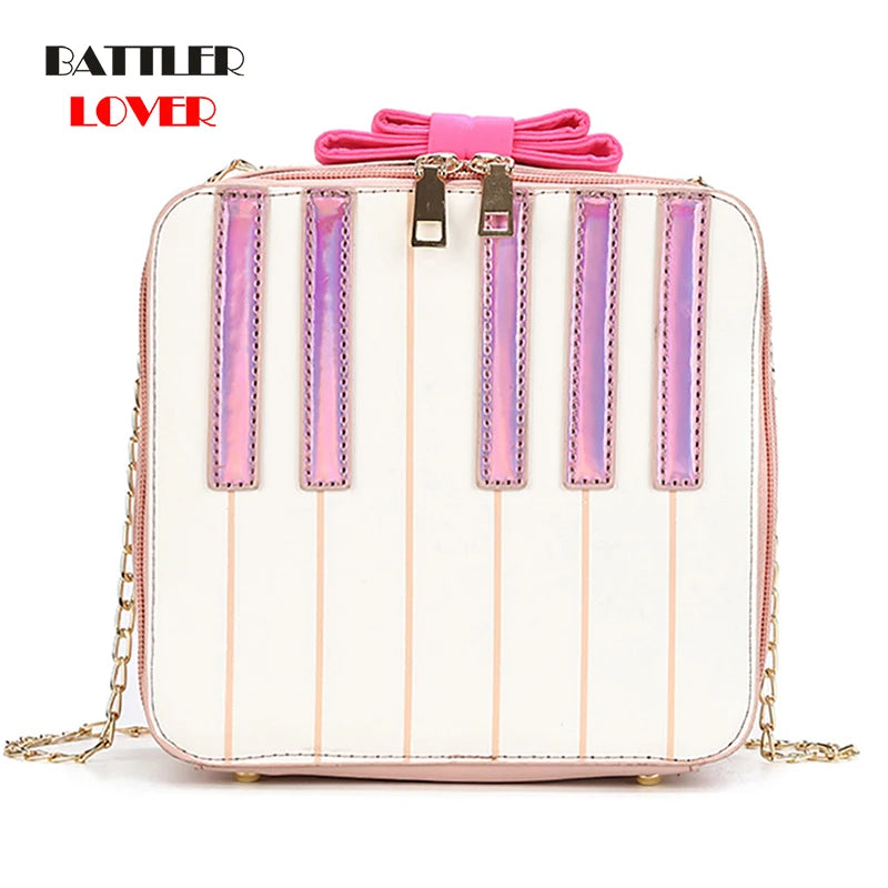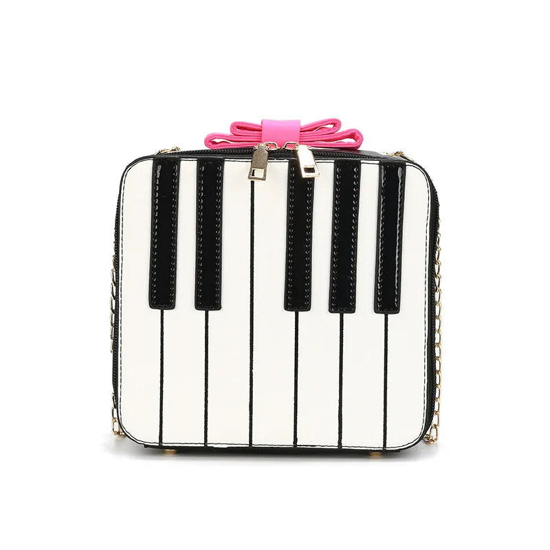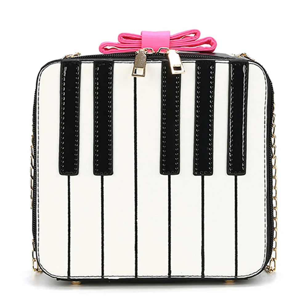 Add a musical touch to your outfit with this unique leather messenger bag featuring piano keys design. Perfect for parties, weddings, and dates.