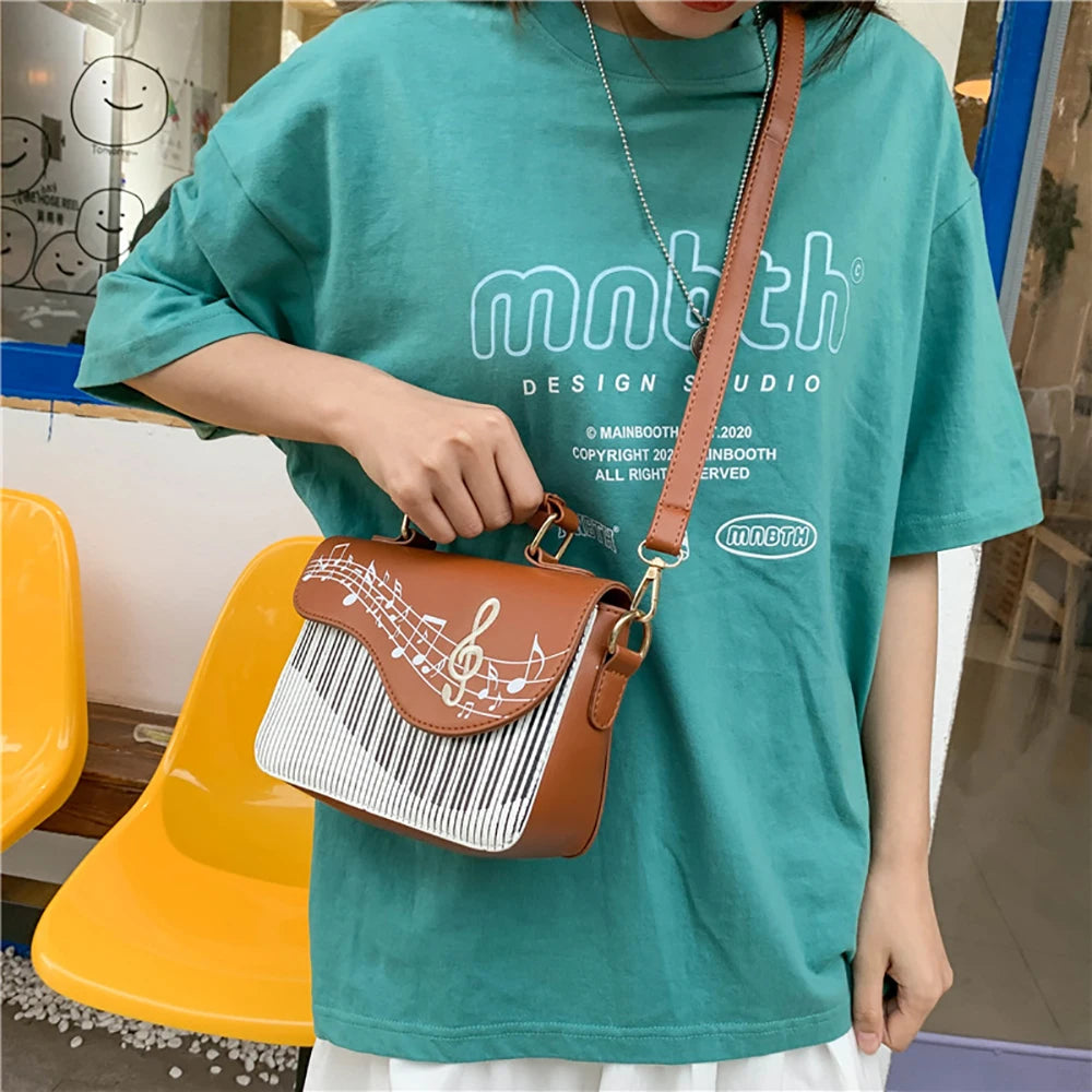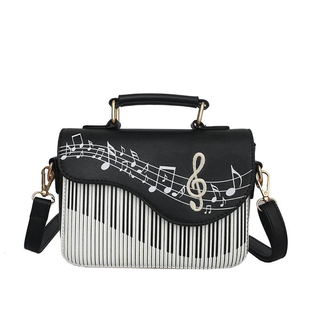 This shoulder handbag features a stylish piano music pattern design. Suitable for casual outings and a crossbody messenger bag.