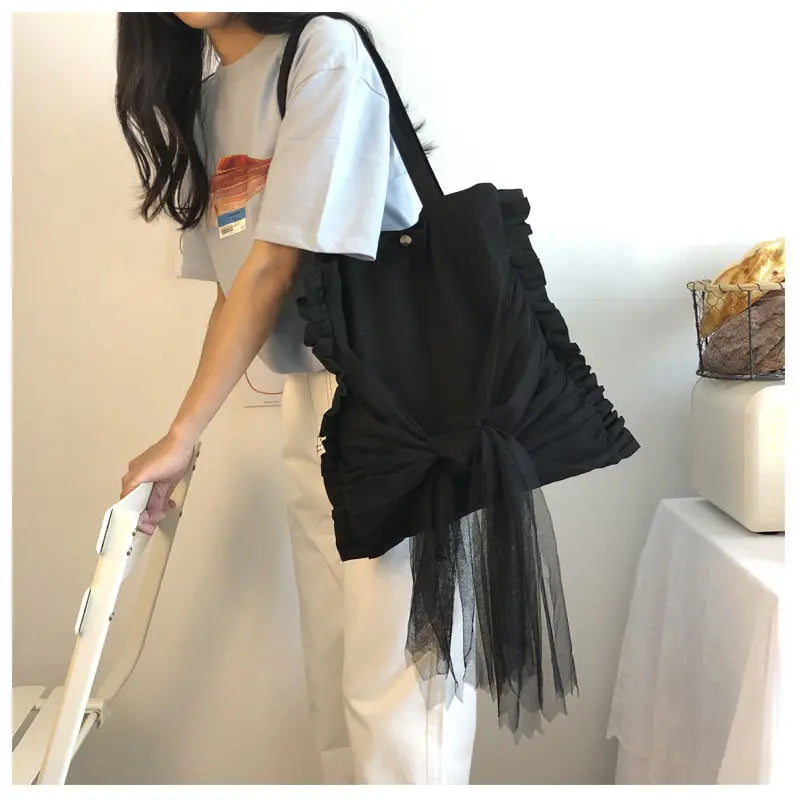 • Large capacity tote with fresh bow detail